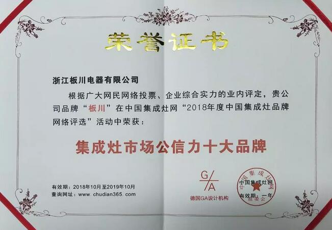 只有消費者說好,才是真的好!本次“市場公信力十大品牌”經由全網票選,讓廣大消費者自主選擇信賴的品牌。最終,板川安全集成灶憑借著良好的品牌形象,優渥的產品品質,贏得了“市場公信力十大品牌”榮譽!也再一次證明,板川安全集成灶是真真正正被人民群眾所信賴及喜愛的產品。
